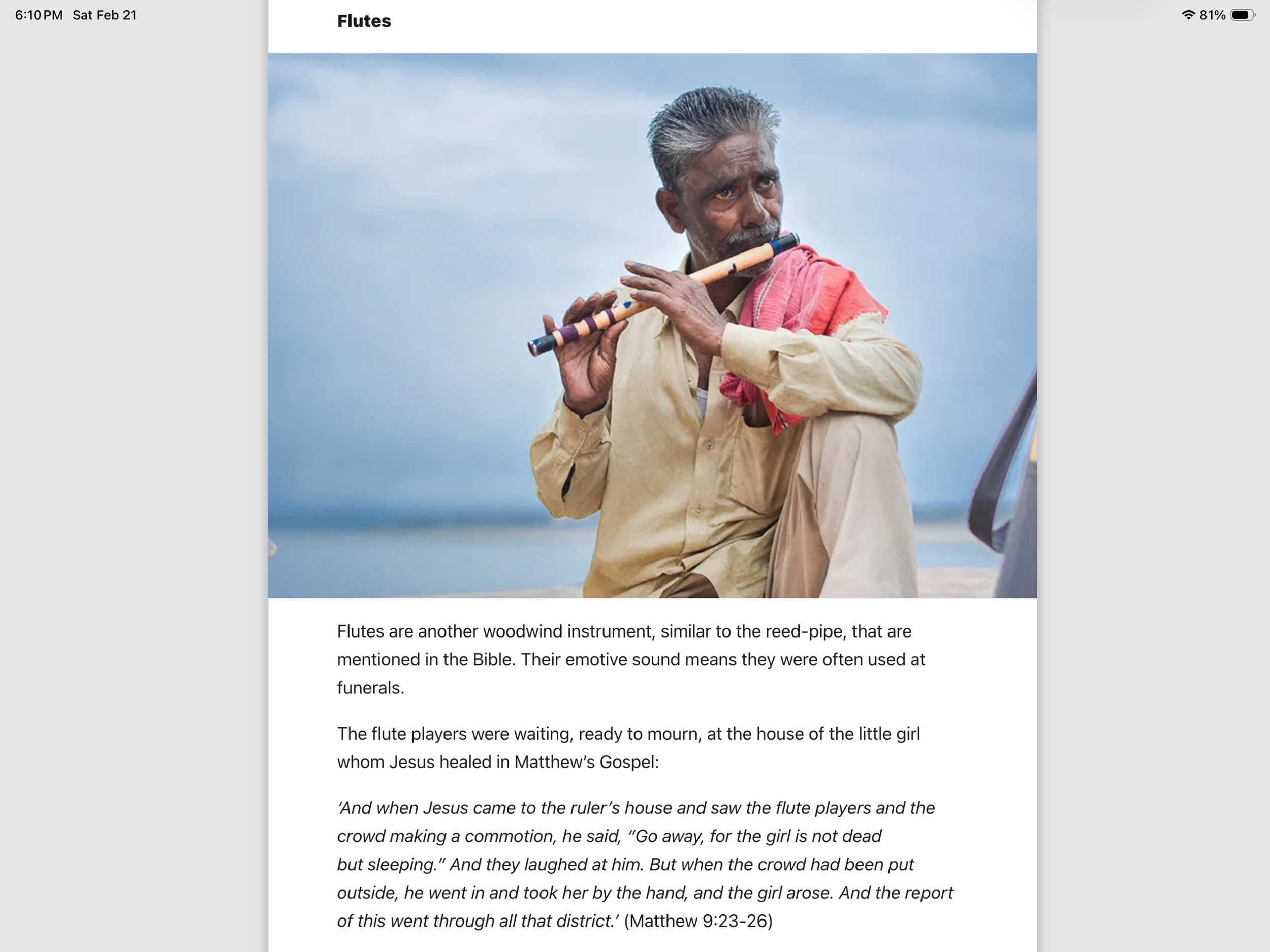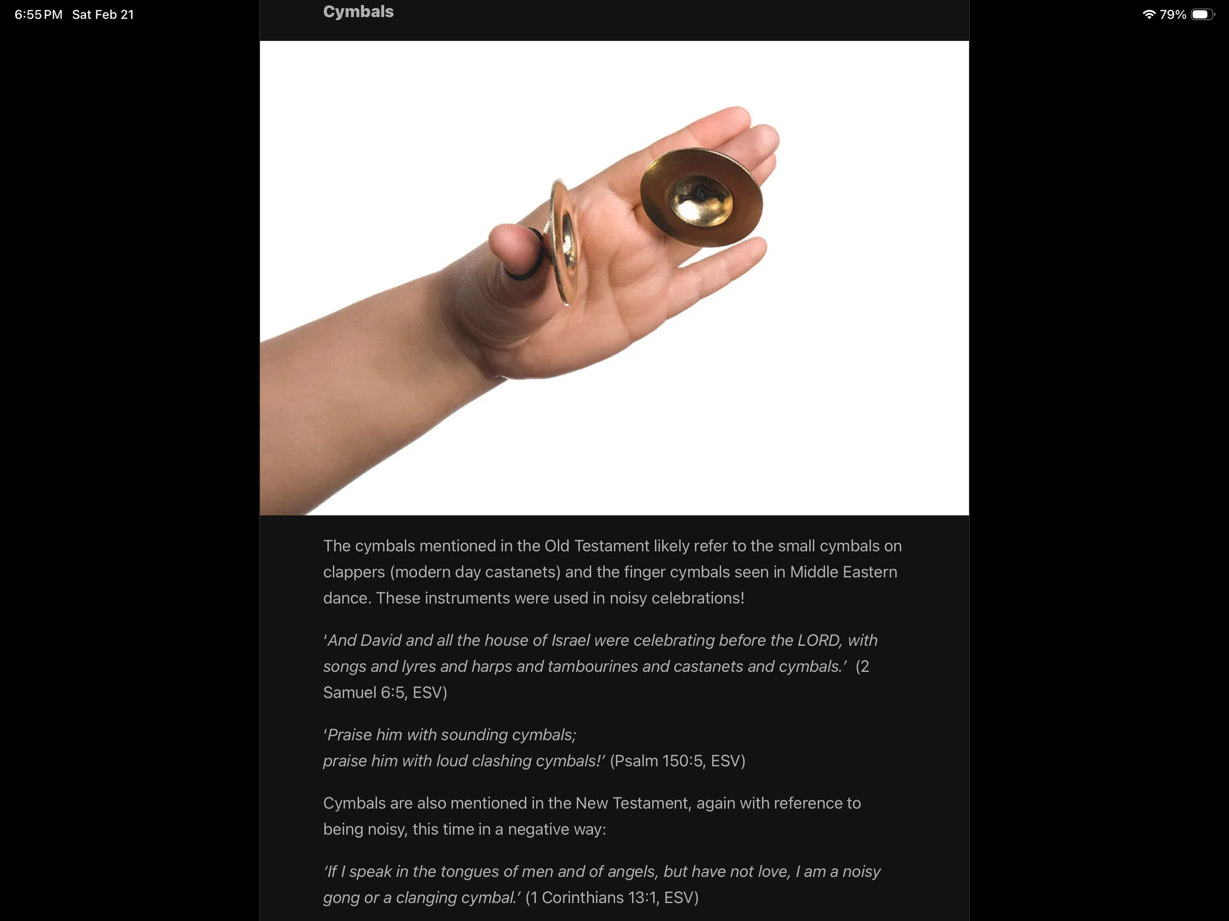 The Bible is filled with references to music and instruments. Here's our list of top musical instruments mentioned in the Bible with reference to and quotes of Bible verses.